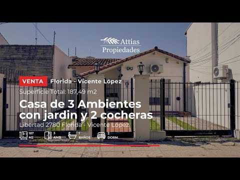 <span style="font-size: 14px; font-weight: bold;">VENTA CASA DE 3 AMBIENTES CON JARDÍN, PILETA Y COCHERAS – LIBERTAD 2780, FLORIDA</span><div style="line-height: 1.2;"><span style="font-size: 14px;">Dirección: Libertad 2780, Florida</span></div><div style="line-height: 1.2;"><span style="font-size: 14px;"><br></span></div><div style="line-height: 1.2;"><span style="font-size: 14px; font-weight: bold; text-decoration-line: underline;">Superficies:</span></div><div style="line-height: 1.2;"><span style="font-size: 14px;">Lote: 8,66 x 21,65 m</span></div><div style="line-height: 1.2;"><span style="font-size: 14px;">Superficie total: 187,49 m²</span></div><div style="line-height: 1.2;"><span style="font-size: 14px;"><br></span></div><div style="line-height: 1.2;"><span style="font-size: 14px; font-weight: bold; text-decoration-line: underline;">Ambientes: </span></div><div style="line-height: 1.2;"><span style="font-size: 14px;">3 (living comedor, 2 dormitorios, cocina independiente, baño completo, jardín con parrilla y pileta).</span></div><div style="line-height: 1.2;"><span style="font-size: 14px;">Orientación:</span></div><div style="line-height: 1.2;"><span style="font-size: 14px;">- Frente: Noroeste</span></div><div style="line-height: 1.2;"><span style="font-size: 14px;">- Contrafrente: Sudeste</span></div><div style="line-height: 1.2;"><span style="font-size: 14px;">Cocheras: 2 descubiertas al frente.</span></div><div style="line-height: 1.2;"><br></div><div style="line-height: 1.2;"><span style="font-size: 14px; font-weight: bold; text-decoration-line: underline;">Descripción:</span></div><div style="line-height: 1.2;"><span style="font-size: 14px;">Encantadora casa de 3 ambientes desarrollada en lote propio, ubicada sobre la calle Libertad, en una zona residencial de Florida. Una propiedad que combina comodidad, funcionalidad y un excelente espacio exterior para disfrutar todo el año.</span></div><div style="line-height: 1.2;"><span style="font-size: 14px;">Al frente cuenta con dos cocheras descubiertas. El ingreso nos conduce a un living comedor amplio y luminoso, equipado con calefacción por tiro balanceado y aire acondicionado.</span></div><div style="line-height: 1.2;"><span style="font-size: 14px;">La casa dispone de dos dormitorios muy cómodos:</span></div><div style="line-height: 1.2;"><span style="font-size: 14px;">* Un dormitorio con piso de madera, sin placard, con aire acondicionado y estufa a gas de tiro balanceado.</span></div><div style="line-height: 1.2;"><span style="font-size: 14px;">* Dormitorio principal con vista al jardín, amplio placard, aire acondicionado y estufa a gas de tiro balanceado, ideal como espacio de descanso principal.</span></div><div style="line-height: 1.2;"><span style="font-size: 14px;">El baño completo cuenta con bañadera y mampara de vidrio.?La cocina es muy luminosa, con buen espacio de guardado y horno a gas, conectando de manera funcional con el área social y el exterior.</span></div><div style="line-height: 1.2;"><span style="font-size: 14px;">El fondo ofrece un verdadero diferencial: un jardín con parrilla y pileta, con excelente asoleamiento durante todo el día, ideal para reuniones, momentos en familia o simplemente disfrutar del aire libre en casa.</span></div><div style="line-height: 1.2;"><span style="font-size: 14px;">La propiedad cuenta con calefacción por tiro balanceado en living y dormitorios, y aires acondicionados en todos los ambientes principales (dos inverter y uno tradicional), garantizando confort en todas las estaciones.</span></div><div style="line-height: 1.2;"><span style="font-size: 14px;">Una casa lista para vivir, con espacios bien definidos y un exterior que marca la diferencia.</span></div><div style="line-height: 1.2;"><br></div><div style="line-height: 1.2;"><span style="font-size: 14px; font-weight: bold;">Características principales:</span></div><div style="line-height: 1.2;"><span style="font-size: 14px;">* Lote propio de 187,49 m²</span></div><div style="line-height: 1.2;"><span style="font-size: 14px;">* 2 cocheras al frente</span></div><div style="line-height: 1.2;"><span style="font-size: 14px;">* Living comedor amplio</span></div><div style="line-height: 1.2;"><span style="font-size: 14px;">* 2 dormitorios con calefacción y aire acondicionado</span></div><div style="line-height: 1.2;"><span style="font-size: 14px;">* Cocina luminosa con guardado</span></div><div style="line-height: 1.2;"><span style="font-size: 14px;">* Baño completo con mampara</span></div><div style="line-height: 1.2;"><span style="font-size: 14px;">* Jardín con parrilla</span></div><div style="line-height: 1.2;"><span style="font-size: 14px;">* Pileta con excelente asoleamiento</span></div><div style="line-height: 1.2;"><span style="font-size: 14px;">* Calefacción por tiro balanceado</span></div><div style="line-height: 1.2;"><span style="font-size: 14px;">* Aires acondicionados en todos los ambientes principales</span></div><div style="line-height: 1.2;"><br></div><div style="line-height: 1.2;"><span style="font-size: 14px;"><span style="font-weight: bold; text-decoration-line: underline;">Ubicación:</span></span></div><div style="line-height: 1.2;"><span style="font-size: 14px;">Sobre calle Libertad, en una zona residencial de Florida, con cercanía a comercios, colegios, transporte público y rápidos accesos.</span></div><div style="line-height: 1.2;"><br></div><div style="line-height: 1.2;"><span style="font-size: 14px;">Aviso legal: </span></div><div style="line-height: 1.2;"><span style="font-size: 14px;">La información y medidas provistas son aproximadas y deberán ratificarse con la documentación pertinente.?Los gastos expresados (expensas, ABL, AySA) se refieren a la última información recabada y deberán confirmarse.?Fotografías no vinculantes ni contractuales.</span></div><div style="line-height: 1.2;"><br></div><div style="line-height: 1.2;"><span style="font-size: 14px;">Attias Propieda